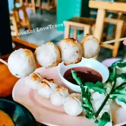 In addition to noodles, there's also satay, which is just as delicious. Crispy pork rinds are fun to chew. Delicious steamed rice cakes. There are also other desserts. 😋 Come and eat.