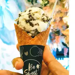 The ice cream tastes good, not too sweet. The shop has cones and cups.