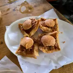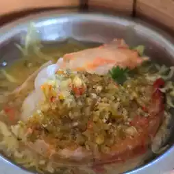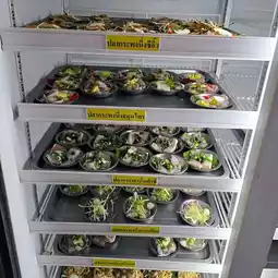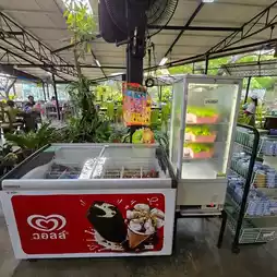 The shop has an open and airy atmosphere next to a mangrove forest. There are many dim sum to choose from, both steamed and fried. Prices start at 35 baht per steamer. Customers can pick their favorite dim sum from the freezer and put it on a tray for the shop to steam or fry as desired. Recommended menu items include homemade dumplings filled with only shrimp, wrapped in thin and soft dough, shrimp dumplings with sweet flavor and chewy shrimp as the highlight, various steamed fish, sliced into pieces, the freshness of the sea bass makes it taste delicious together, various steamed shrimp, large shrimp, fresh and delicious together.