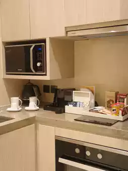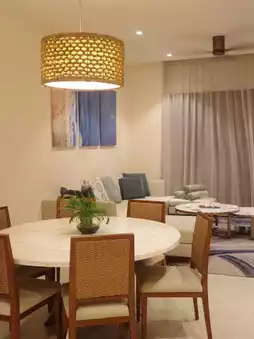 The living space was cozy with a large dining table and sofa, and the bedroom with a large bed was very spacious and really comfortable~🥹✨