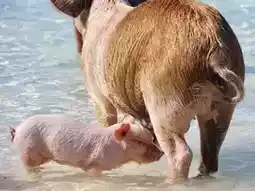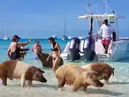 The story goes that a transport ship once ran aground in the Bahamas, and the pigs that were loaded on board reached the island and began to live there 📖