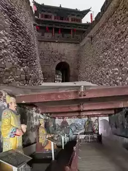 🌼From the Guanlou, you can enter the narrow city wall with high walls. It is paved entirely with bluestone. After thousands of years of rolling by wheels, smooth and round stone slabs have naturally formed deep wheel track marks, the deepest of which can reach one foot. This pass was the only main transportation route into Beijing in ancient times, and it is a historical mark left by the vehicles and pedestrians passing through it.