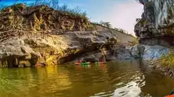 Following the winding paths, the sound of flowing water grows clearer, like a melodious symphony guiding visitors deeper into the canyon's embrace. The water of Dragon Pool Canyon is its soul. Crystal-clear and shimmering under the sunlight, it mirrors the blue sky, white clouds, and verdant mountains. Looking down, you can see every pebble on the bottom, with small fish and shrimp darting playfully, adding vitality to the serene canyon.