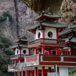 Lingtong Mountain is characterized by four major features: dangerous peaks, strange rocks, clear springs and floating clouds. The natural landscape has been known as seven peaks, ten temples and eighteen scenes since ancient times, but the two most unmissable scenes are the "World's First Natural Buddha" and the "Bead Curtain and Rain Thousand Meter Waterfall". The hanging temple here is definitely an iconic place cannot be missed!