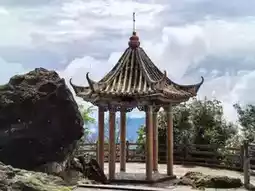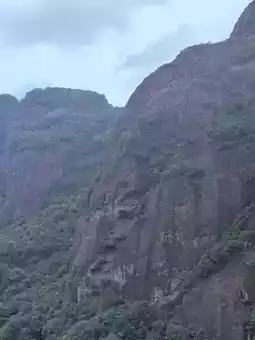 We drove from Xiamen to the foot of Lingtong Mountain in Pinghe, setting off early in the morning. The journey took about 2 hours, and when we arrived, the morning mist had not yet dissipated. We had already stepped into Lingtong Mountain, with our final destination being the Hanging Temple on the mountain. Known as the "Number One Mountain in Southern Fujian," its exposed rugged volcanic rocks, carved by wind and rain over hundreds of millions of years, resemble giant natural swords splitting the clouds. The path from the foot of the mountain to the Hanging Temple is not difficult to climb, mostly consisting of stone steps. The children were curious along the way, making the journey slow, and it took nearly 2 hours to reach the Hanging Temple. Coincidentally, it started to rain, and clear springs seeped from the rock crevices. We were fortunate to witness the spectacular "Beaded Curtain Turning into Rain," but unfortunately, without a camera, we couldn't capture the beauty we saw. Soon after, the rain stopped and the sky cleared, revealing the sun as the clouds dispersed, making everything suddenly bright and clear.