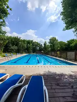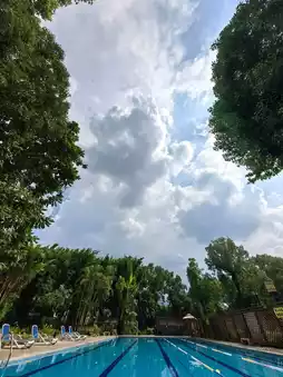 2️⃣ There's a swimming pool. In the afternoon, there were no other customers, so I had the pool "to myself" for a while, but it was indeed too hot under the scorching sun.