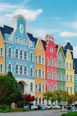 ▪️ The entrance is the International Shopping Town, with colorful houses resembling European streets