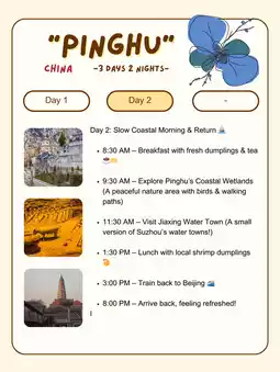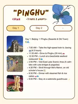 Day 1: Beijing → Pinghu (Seaside & Old Town) 🏡🌊