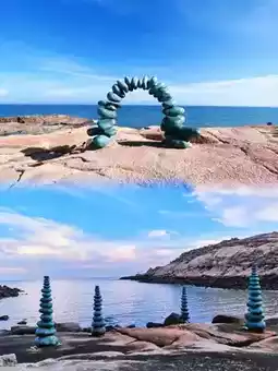 - **Banyang Shifan:** Two towering stone pillars stand in the raging waves, like the sails of Zheng He's treasure ships that never come down;