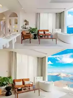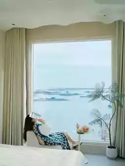 Surrounded by the sea on three sides, it boasts 270° floor-to-ceiling windows + an ocean-view bathtub🛁.