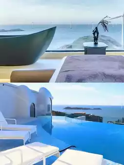 This hotel faces the ocean, where you can listen to the sea breeze. I declare this my dream Santorini getaway this year!