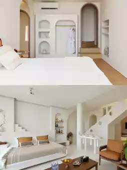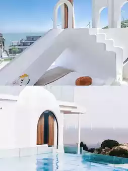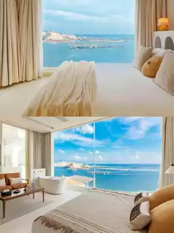 🔸Located halfway up a mountain, with mountains behind and the sea on three sides, the view is so captivating that I couldn't take my eyes off the waves. Waking up in the large bed by the floor-to-ceiling window is incredibly romantic!
