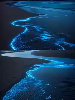 The seawater seems enchanted by stars, with every wave glowing a mystical blue. Stepping into it, the bioluminescence scatters with each footstep, making me feel like I'm treading on stars and waves.