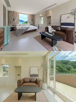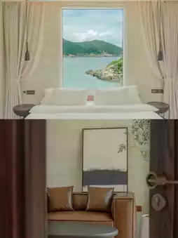 Private Beach: Some rooms overlook a private beach, complemented by traditional houses, rocky hills, and other fishing village landscapes, offering a unique coastal vibe.