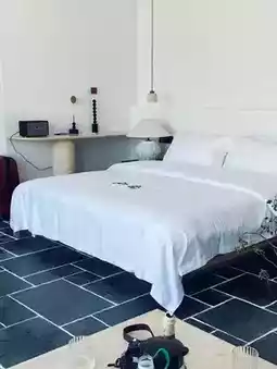 Transformed from abandoned fishing village structures, it stands out strikingly amid the rustic stone houses!