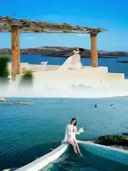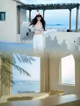 • Cream-colored Mediterranean buildings + cactus greenery, wearing a white long dress or a bright bikini, every pose looks like Santorini!