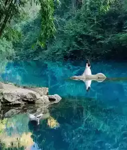 At dawn, the ancient bridge’s reflection embeds like jade in the water. Descending the **68-Step Waterfall**, stepping stones lead through a fairy-tale forest—icy streams lick at bare feet, moss carpets the rocks. But **Wolong Pond** steals the show: blue-green water, a liquid gem, spills over a crescent dam, and from a drone’s view, karst peaks cradle the pool like a peacock’s lost feather.