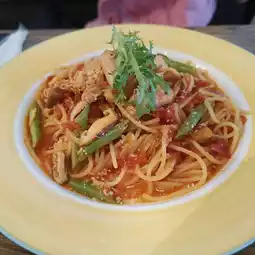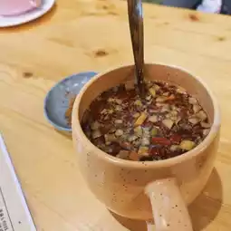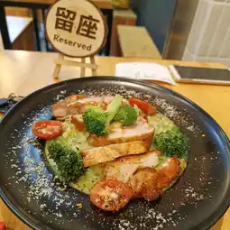 This hidden gem on Ren'ai Road in Pingtung might not look like much from the outside, but once inside, you'll notice the art installations and seating are quite stylish, making it a great place for families, kids, and couples to enjoy a meal together! While they might seem famous for their cheese, their Italian-Chinese fusion cuisine is also incredibly delicious. Today, I ordered the chicken thigh pasta with red sauce and the risotto with pesto sauce, both incredibly flavorful and a testament to the chef's skill! Their Chinese cuisine is also quite strong. Today, I ordered the Korean kimchi pork, which went really well with the rice and wasn't too salty, just the right amount! As for drinks, the almond tea, citrus tea, and fresh green milk tea were all delicious, each with its own unique flavors! The soup was just average! The highlight of the cheese order was the chocolate, which I thought was quite creatively presented, and the fruit was a nice touch! The cheese itself was also above average! While the overall space isn't large, the exquisitely designed meals and unique artwork add to the appeal! Meals range from around NT$200-300, and you can add a set menu. Set A includes a drink and soup for $70, while Set B includes a drink and cheesecake for $100. If you want soup, a drink, and a cake, I recommend choosing Set A and adding the cheesecake for a better deal. Sharing this with everyone!