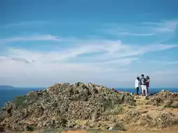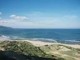 The magnificent coastal scenery is a mosaic of eye-catching colors: khaki sand, bright green grass, azure coastline, and snow-white waves.