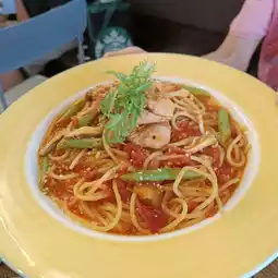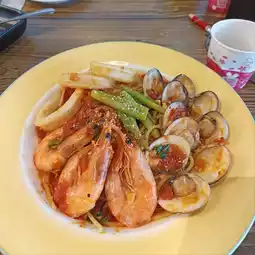 In Pingtung City, my favorite thing is to visit delicious Italian restaurants. No matter whether it is pasta, risotto, gratin, or soup, you should try it once. If it is delicious, I will share it with everyone! This Yijian Pasta belongs to the hidden food series, located at No. 116, Fengrong Street, Pingtung City. The decoration is retro, and the interior is actually quite exquisite and compact, and clean and comfortable. There is a restroom on the second floor, and the space on the second floor is even more spacious! The meals, whether it's risotto or pasta, are all good! This time, the pasta ordered was seafood with red sauce and tender chicken. The pasta had a chewy texture and the sauce went well with the ingredients. Although the green sauce chicken didn't look very appealing, it was delicious! The price is around $300 per person, and it’s quite filling with the set meal, and there’s no service charge!