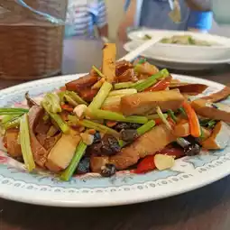 I have left my footprints everywhere in Pingtung, haha. This time I came to Wanluan, Pingtung for a dinner party, and chose No. 1 Old House at No. 36-3, Lane 2, Fuxing Road, Wanluan Township. The decoration design is quite retro, and it is full of antique atmosphere from the outside to the inside. It is recommended to make a reservation during holidays, otherwise it will be difficult to get a seat if there are too many people! There were 12 of us dining this time, and we ordered 7 dishes and 1 soup. I personally felt that the tastes were all quite unique and delicious. For example, the shredded ginger large intestine had just the right amount of sourness! The Hakka stir-fry has just the right amount of saltiness and is very fragrant. I think every dish is delicious! I think the peeled pepper chicken soup is very smooth, but it's a pity that the spiciness of the peppers was not cooked out, but instead was masked by the chicken and other ingredients. Overall, I think it's above average. The price per person is 200-300, depending on the dishes ordered! The environment is comfortable, the chairs at the round table are a bit hard to sit on, but the chairs for four people are relatively soft!