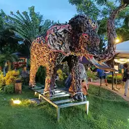 We had a Chinese dinner at No. 1 Old House, and then went to Neipu, Pingtung for dinner with my family. I chose this restaurant because I was attracted by its Thai style. The first reason is that I like sour and spicy dishes, and the second is that when you enter the restaurant, you can feel the Thai-style architecture and enjoy an exotic stroll! I think it’s a good experience! The admission fee is $100 per person, and except for national holidays (a discount of $50), all other times can be deducted from the cost of meals. Today our meal cost was more than $1,300, which was more than $1,000 after the discount. I can enjoy the exotic atmosphere of the park and get the full discount. I think it's a good deal! This is why the dishes here are delicious! From Thai-style pork to cabbage with shrimp paste, you can feel the chef's dedication. The stir-fried flavor will make your taste buds tremble with joy. The aroma is so fragrant that you definitely can't miss it! The pity about the spicy chicken was that the meat was not tender enough, the batter was not crispy enough, and the sauce at the bottom was not sour enough! The cold-mixed green papaya shreds is a dish worthy of praise, it is very tasty and has just the right amount of sourness and spiciness! But even though there are some shortcomings, the advantages are more prominent, so it’s still good! The flaws do not outweigh the merits! I give high marks to the environment, but the food is just above average!