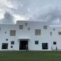 Located in Hengchun, Kenting, Ocean Day by Day is a white hotel overlooking the seaview featuring with a big intagrammable green field in front of it.