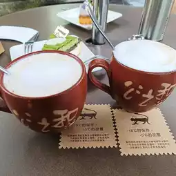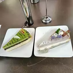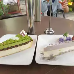 I brought my parents to Chaozhou, Pingtung to taste the famous cheesecake. I heard it is the most famous cheese shop in Pingtung, so I made a special pilgrimage here! As you walk into the restaurant, you feel like you are in a green environment and one with nature! There are also some unique designs as shown in the photos, which I think are quite distinctive. Once you find your seat, go to the counter and order! This time I ordered two cheesecakes, one with taro and the other with matcha. I thought the cheese part was delicious, but the taro and matcha on top were just average! We also ordered two cups of latte, which I also felt were just average. Perhaps their best dish is the cheesecake, the original flavor is quite outstanding!