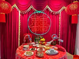Just like the decoration of wedding halls in ancient times, there are also meal models on the table.
