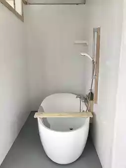 But please note that there are no doors in the bathroom and toilet. Only the toilet has a curtain that can be lowered. It will be a bit awkward if you are not a couple staying here😅