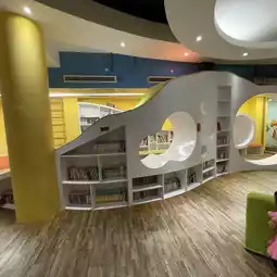 Hotel facilities include outdoor swimming pool, indoor swimming pool, sauna, fitness room, children's playroom, children's library, restaurant, and coffee shop.