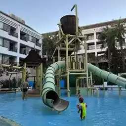 Large slide, suitable for adults and children, of course, at least 1.2 meters high to play, the water is relatively deep, we can play according to the height.