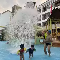 Large play pool, of course, there are children's favorite, large bucket, constantly pouring a large number of leaks, creating a large waterfall, and small slides, different types of showers, can bring children joyful play, here the water core is relatively shallow, about only 0.5 meters high, two or three-year-old children can stand feel very safe.