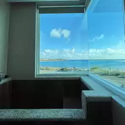 The space in the room is not large but very clean and bright, located on the third floor facing the unparalleled sea view and the distant goose nose lighthouse in the distance, the key bathroom in the bath also opened a large area of floor-to-ceiling glass windows can be seen while bathing