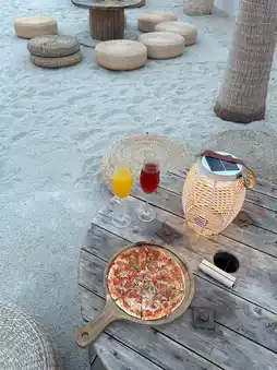 Sitting on the beach, drinking, eating pizza and chatting is very relaxing🍕