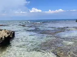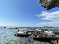 I saw some tourists coming back here to snorkel and play in the water. They need to pay attention to safety. There are many discarded broken wine bottles on the shore and many glass bottle fragments washed by sea water in the water. If protective measures are not prepared, there is a risk of injury if one does not pay attention.