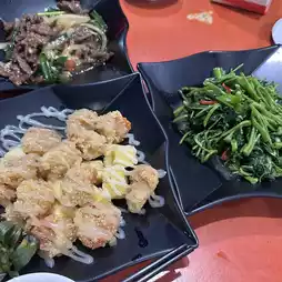 For two people, ordering three dishes is quite satisfying. Paired with rice and beer, this combination will make you full. 🍚