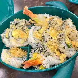 Ogawa Sushi's fried shrimp sushi bento is very popular. The crispy fried shrimp on the outside and tender on the inside are paired with fragrant rice, which tastes great. 🍤👍