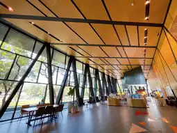 There is a high-ceiling architectural design and my favorite large floor-to-ceiling windows 😆