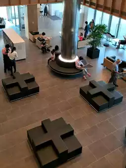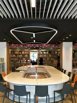 Pingtung County Main Library is located in Millennium Park in Pingtung City. It is a library transformed from a 30-year-old building, which was formerly the Pingtung County Government Cultural Bureau. After renovation, it became the Pingtung County Main Library. Surrounded by trees in Millennium Park, it is known as the 'Library in the Forest.' The library has five floors: the first floor features a lobby with a service desk, a children's reading area, and a nursing room; the second floor houses the general book area, world history and geography section, and an outdoor reading area; the third floor is dedicated to the youth book area with an audiovisual room, a large staircase area, and an internet area; the fourth floor is the Pingtung Literature Museum with language and literature books and a stone house; the fifth floor is an auditorium. On weekends, there is a cultural market outside the library, providing a great place for people to relax and shop in addition to reading books.