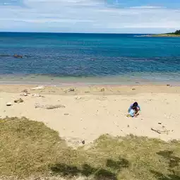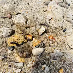 The beach features both sandy and shell-covered areas. As soon as we arrived, we spotted tiny black sea cucumbers, followed by a group of hermit crabs seemingly having a meeting. 😂 While playing with sand on the shore, we even found a toy excavator—what a rewarding trip! The weather was pleasantly cool with a gentle breeze, making the experience truly refreshing. 😌