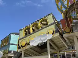 The five colorful carriages are eye-catching. There's even a hot air balloon design in the center, creating a sense of flight.