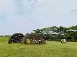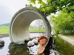 I didn't see any small fish, shrimp, or tadpoles in the stream. The park is quite vast. There are plenty of green spaces for picnics. Bicycles are also available for rental. You can easily spend half a day here. Highly recommend a visit and a cold drink. 😂