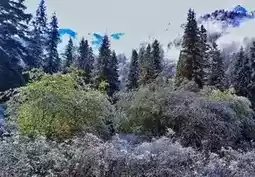 When you can enjoy the red leaves around Pingwu County, the first snow makes the red leaves of Wanglang in Pingwu stained with frost and covered with white. The layered sense of early winter in Wanglang is vividly displayed. Going upstream against the Fu River, the mountains on both sides are becoming more and more red, while the towering snow-capped mountains in the upper reaches of the Duobo River have long been covered with thick snow.