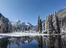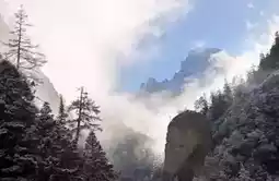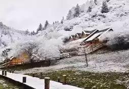 The early winter in Wanglang is like a black-and-white silent film. The entire scenic area is stripped of all colors, leaving only a holy white. The beauty is the unique beauty of Wanglang in winter. Trees are the soul of Wanglang and are the most stunning in the entire scenic area. The cold stream rushes down through the wide lake layer by layer, splashing water droplets, which is a tender memory left for people.