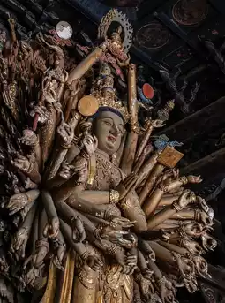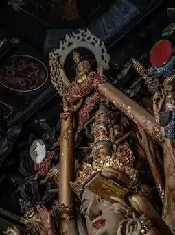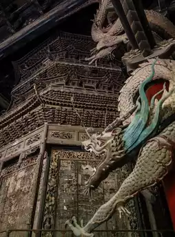 ②The Thousand-Armed Guanyin carved entirely from golden nanmu wood in the Great Compassion Pavilion is about 9 meters high, with a vivid image and is extremely rare. The main body is carved from a huge piece of nanmu wood, and behind it are 1004 hands in a fan shape, with an eye on each hand. It is also called "Thousand-Armed and Thousand-Eyed Guanyin."