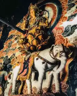 🌟 The Three Buddhas of Buddhism in the Mahavira Hall: The three Buddhas—the Buddha of the past, Dipankara Buddha; the present Buddha, Shakyamuni Buddha; and the future Buddha, Maitreya Buddha. A 450-square-meter Ming Dynasty gilded mural depicts the journey of Princess Miaoshan to becoming Guanyin Bodhisattva.
