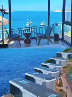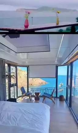 The guesthouse is built on a cliff by the sea, where you can see the sunrise and sunset over the ocean right from your bed. Open the window, and during the day, you’ll see the vast East China Sea; at night, the entire starry sky. Downstairs is the sea. Guests can fish, swim, or dig for clams and sand on the small beach. It’s like a perfect seaside space capsule with a 360-degree sea view. It only takes 5 minutes to get from the guesthouse to the beach. There’s a mini bar inside the guesthouse, and the mineral water and soda provided are all free.