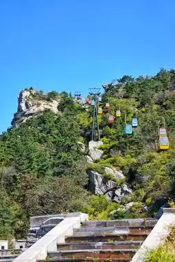 Tourists can take a cable car to be in the high sky, taking in the grandeur of Mengshan Shouxian, not only can they feel the thrill of chasing the wind and clouds, but also have the comfort of floating like an immortal. Take the cable car down to the Baisu platform to pray for Mengshan Shouxian, praying for the health and longevity of the family
