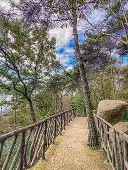 Enter the scenic area through the ticket gate, take a bus up the mountain, get off at the Mengshan Xianweng Station on the top of the mountain - Guimeng Peak, take the Baishou Cableway on the west side of the mountain top - Mengshan Xianweng - return to the mountain top station - forest wooden plank road - cliff plank road - Dongtianmen - 5D glass bridge - take a bus down the mountain - Jiulongtan Station - forest rafting - scenic area exit - Mengshan Lizi Camp - return home